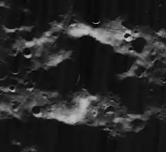 ![]() Imagen de la misión Lunar Orbiter 4 con el norte arriba. El Mons Malapert es el pico brillante cercano al centro por debajo. | ||