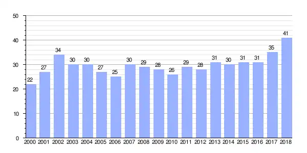 | Gráfica de evolución demográfica de Malata entre 2000 y 2018 |