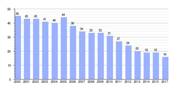 | Gráfica de evolución demográfica de Maldonado[1] entre 2000 y 2017 |