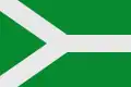 Bandera rectangular de proporciones 2/3, compuesta por un paño verde con una perla heráldica acostada que tiene sus extremos en los vértices del asta y en el punto medio del batiente, siendo sus brazos de un acho equivalente a 1/5 del de la bandera.[24]