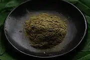 - Mezclado: se mezclan las hojas pulverizadas con las cenizas (10 % de la cantidad de hoja triturada) preparadas en el paso anterior.