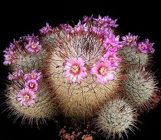 ![]() Mammillaria bombycina en floración | ||
