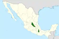 Endémica de los estados de Guanajuato, Hidalgo, México, Oaxaca, Puebla, Querétaro y San Luis Potosí en México.[2]