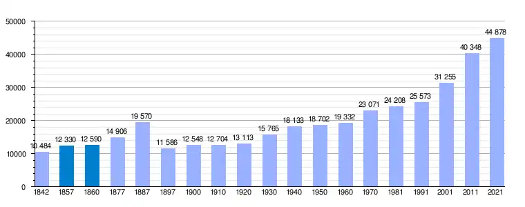 | Gráfica de evolución demográfica de Manacor[5] entre 1842 y 2021 |