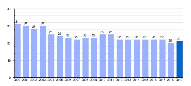 | Gráfica de evolución demográfica de Manceras[3] entre 2000 y 2019 |
