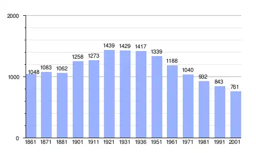 | Gráfica de evolución demográfica de Mandanici entre 1861 y 2001 |