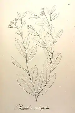 - Manihot salicifolia Pohl, Pl. Bras. Icon. Descr. 1: 18 (1827).