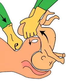 Esta técnica se inicia cuando la expulsión espontánea del feto ha llegado hasta la aparición del ángulo del omóplato y permite la liberación de los hombros y de la cabeza sin la necesidad de introducir la mano en los genitales.