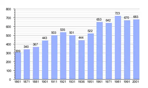 Gráfica de evolución demográfica de Mantello entre 1861 y 2001