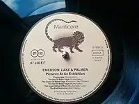 ![]() Fotografía de un etiqueta de un LP Manticore | ||