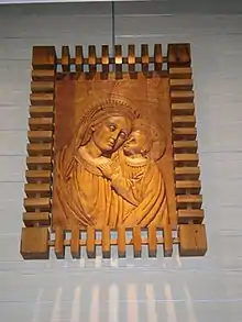 • Tallas en madera, como la del altar de la Capilla del Colegio Nuestra Señora del Buen Consejo (Agustinos) de Madrid.[6][7]