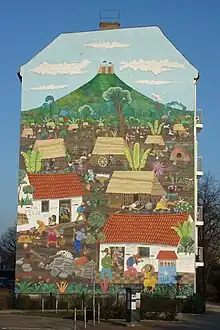 - 1985 en Berlín, Alemania Oriental, Skandinavische Straße 26 - Nicaragua-Wandbild "Monimbó 1978" es llamado "mural primitivista más grande del mundo": un mural de 12 × 30 m, donde escenifica la lucha de liberación de la comunidad indígena Monimbó