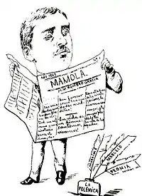 ![]() Caricatura de Manuel Vicente Romero García (C. década de 1890). | ||