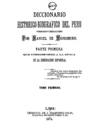 Desde 1855 se consagró a la investigación histórica y fruto de esta labor fue una monumental obra en ocho volúmenes que tituló Diccionario histórico-biográfico del Perú. Parte primera que corresponde a la época de la dominación española. Como su título lo dice explícitamente, se trata de la primera parte de un amplio proyecto de historia del Perú a base de biografías, que empezaba con la conquista española y el Virreinato. Solo los cuatro primeros tomos fueron supervisados directamente por el autor (1874, 1876, 1878 y 1880), los restantes se editaron póstumamente, el último de ellos en 1890. Posteriormente Evaristo San Cristóval lo reeditó con un apreciable apéndice, en un total de 15 volúmenes, entre 1931 y 1938.