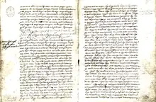 ![]() Capítulo 7 y capítulo 8 del manuscrito de Huarochirí, principios del siglo xvii. | ||