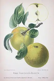 - Esta obra contiene una traducción parcial derivada de «Reinette» de Wikipedia en francés, concretamente de esta versión, publicada por sus editores bajo la Licencia de documentación libre de GNU y la Licencia Creative Commons Atribución-CompartirIgual 4.0 Internacional.