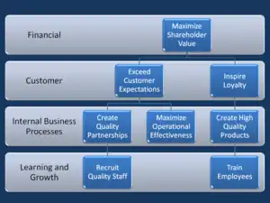 - Perspectiva financiera o de resultado: En organizaciones con fines de lucro, esto implica a accionistas, mientras que en organizaciones sin fines de lucro, esto implica a las organizaciones financieras o subsidiarias.