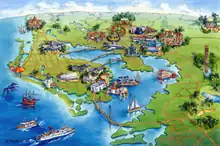 - Esta obra contiene una traducción parcial derivada de «Pictorial map» de Wikipedia en inglés, publicada por sus editores bajo la Licencia de documentación libre de GNU y la Licencia Creative Commons Atribución-CompartirIgual 4.0 Internacional.