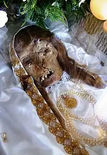 Años después se abrió su sepulcro y se encontró el cuerpo incorrupto permaneciendo intactas sus vestiduras, exhalando un fuerte olor a rosas. Sin embargo, el cuerpo volvió a ser enterrado, siendo recubierto con ácido nítrico para que se descompusiera.