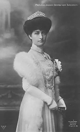| ● 30 de octubre de 1906-28 de noviembre de 1947: | Su alteza real la princesa Juan Jorge de Sajonia, duquesa de Sajonia, princesa de Dos Sicilias |