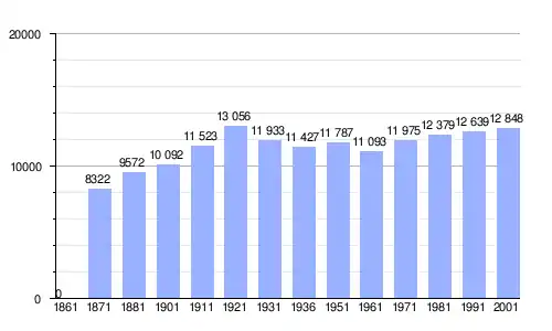 | Gráfica de evolución demográfica de Marostica entre 1861 y 2001 |