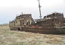 Barco abandonado cerca de Aralsk, Kazajstán.