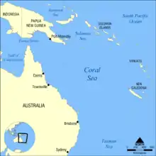 - mar de Coral, separado por las islas Salomón y Vanuatu;[2]