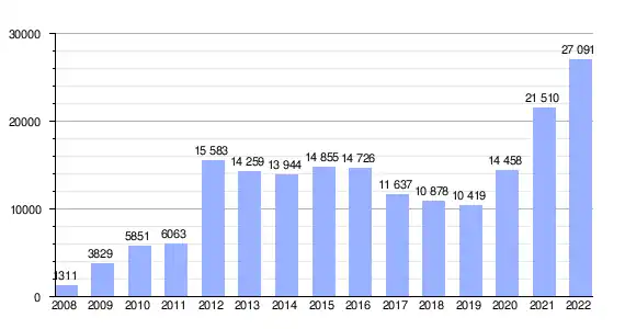 | Gráfica de evolución demográfica de Maracena[11] entre 1842 y 2021 |