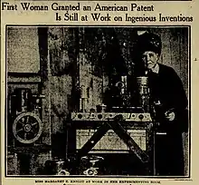 A pesar de las dificultades que tenían las mujeres en el siglo XIX para registrar patentes a su nombre, Margaret Knight registró más de veinte. Entre los inventos que patentó están una máquina numeradora, un sistema de ventana con marco y batiente, máquinas cortasuelas, una máquina perforadora-cepilladora para superficies curvas, varios motores rotativos y un motor de combustión interna.[10][2]