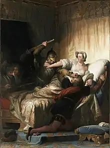 - Origen de la leyenda: Historiarum sui temporis (traducción al francés en 1659), del historiador Jacques Auguste de Thou, connu pour ses partis pris contre les Valois.[56] El famoso historiador Jules Michelet habría inventado que Margarita se hubiera prostituido con el asesino de Du Guast, el barón de Vitteaux, como forma de pago.[57]