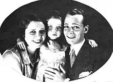Fotografía de infancia de Mari Carmen Díaz de Mendoza junto a sus padres Carlos Díaz de Mendoza y Guerrero y Carmen Larrabeiti.
