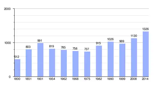 Gráfica de evolución demográfica de Marigny-Brizay entre 1800 y 2014