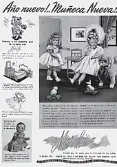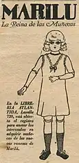 Marilú desde que nació fue siempre la muñeca preferida. Ahora sus mamitas podrán añadir al cariño que por ella sienten el orgullo de saber que Marilú representa un verdadero triunfo de nuestra industria nacional.[11]