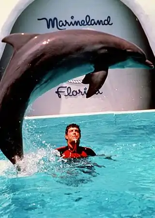 La idea fue por primera vez concebida por W. Douglas Burden, Cornelius Vanderbilt Whitney, Sherman Pratt y Ilya Tolstoy como un oceanario que podría ser usado para filmar la vida marina. Se seleccionó un lugar del océano Atlántico al sur de San Agustín en Florida, después conocido como la ciudad de Marineland. La financiación y construcción presentaba un reto al ser Marineland el primer intento de capturar y retener criaturas marinas, pero estos retos se superaron el 23 de junio de 1938. Los “Estudios Marine” (el nombre que Marineland de Florida posteriormente adoptó) comenzaron a funcionar con su atracción principal consistente en un delfín de la especie nariz de botella. Inesperadamente, alrededor de unos 20.000 turistas colapsaron la autopista estatal de Florida A1A para visitar la nueva atracción.