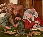 - Quinten. Two Jewes writing in a booke wth mony & a Jewell before yem: «Follower of Marinus van Reymerswaele (c. 1490-c. 1567) The Misers 1548-51», Royal Collection Trust, Explore the Collection