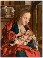 La Virgen de la leche | h. 1530 | Óleo sobre tabla de roble, 61 x 46 cm | Madrid, Museo Nacional del Prado | Inv. P2101.[30] Firmado en el alféizar de la ventana con un falso monograma «AD» de Alberto Durero y la fecha 1511. | 2 |