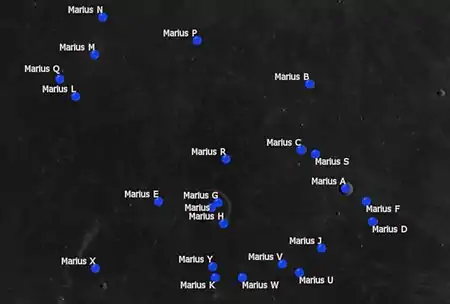 Por convención estos elementos son identificados en los mapas lunares poniendo la letra en el lado del punto medio del cráter que está más cercano a Marius.