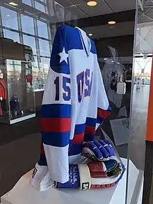 ![]() Uniforme utilizado por Wells en el Milagro sobre hielo. | ||
