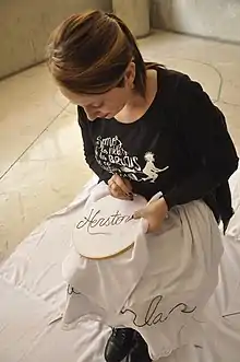 - I Congreso Red de Historiadoras Feministas, Biblioteca de Santiago. Obra: Tejidos de filiación y tiempo: herstory (bordado con cabello de mujeres).