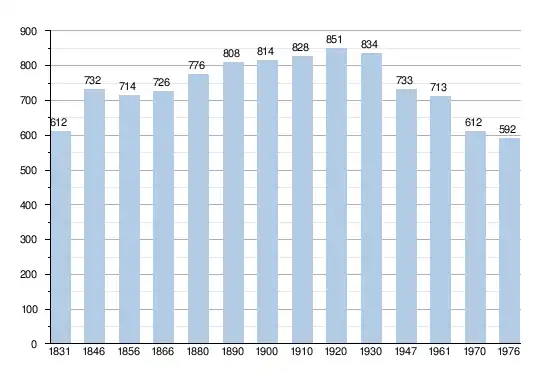 - Bronnen:NIS, Opm:1831 tot en met 1970=volkstellingen, 1976= inwoneraantal op 31 december