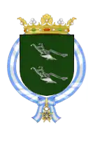 ![]() En sinople, dos rejas de arado, de plata, puestas en palo.[1] | ||