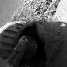 Se trata de un terreno muy suelto con granos muy finos o polvo, en contraste con la arenisca de la Tierra que se forma con granos bastante grandes y aglomerados. El robot ha resbalado varias veces porque el terreno es muy suelto.