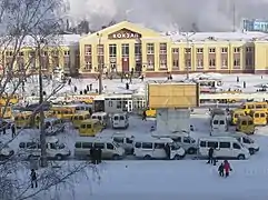 Varias marshrutkas esperando en la estación de Nizhni Taguil.