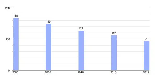 | Gráfica de evolución demográfica de Martín (parroquia) entre 2000 y 2019 |