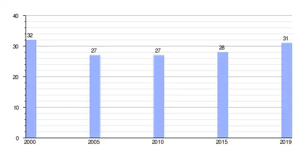 | Gráfica de evolución demográfica de Martín (aldea) entre 2000 y 2019 |