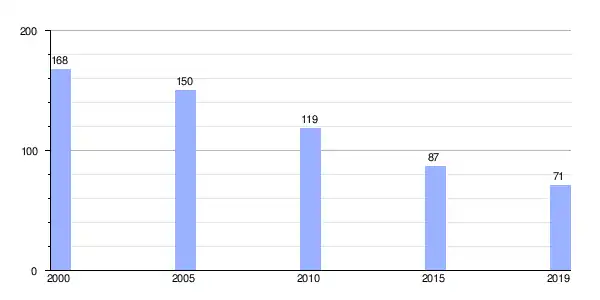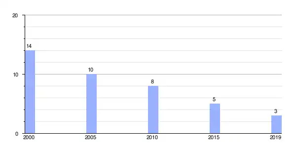 | Gráfica de evolución demográfica de Martín (parroquia) entre 2000 y 2019 |