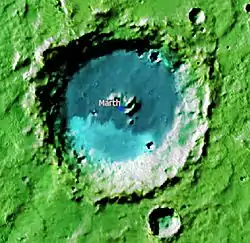 ![]() Cráter marciano Marth (colores virtuales) | ||