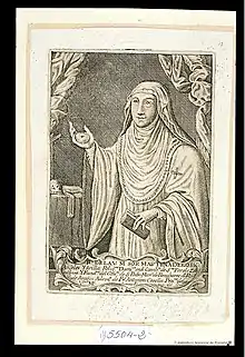 Estampa y Rosario de la Madre Sor Martina de los Ángeles, Religiosa que fue en el Convento de Dominicas de la Villa de Venavente [sic]; se recoge.[7]