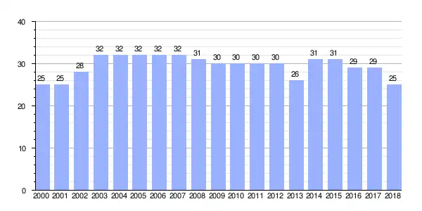 | Gráfica de evolución demográfica de Martulo entre 2000 y 2018 |