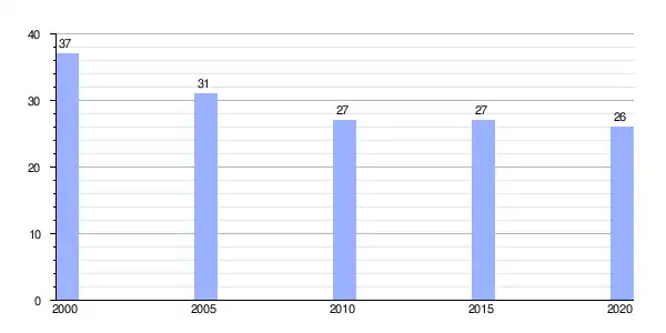 | Gráfica de evolución demográfica de Marzán (parroquia) entre 2000 y 2020 |
